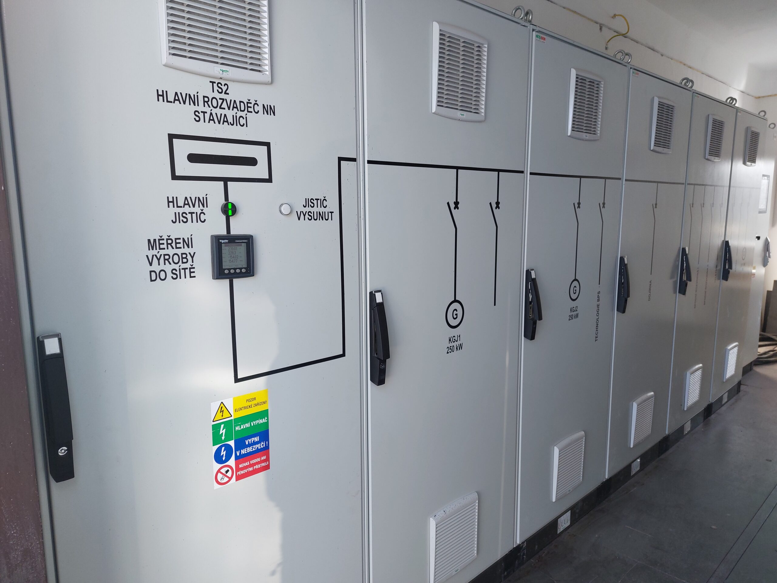 Nedílnou součástí byla také kompletní elektroinstalace a MaR. Jedná se o dodávku a instalaci NN rozvaděče pro distribuci elektrické energie do areálu včetně ostrovního provozu a řízení spotřeby. Dále hlavního kompenzačního rozvaděče a rozvaděče ComAp pro řízení distribuce energie a ovládání ostrovního provozu.V neposlední řadě pa rozvaděče Měření a Regulace technologie distribuce tepelné energie a chladu.